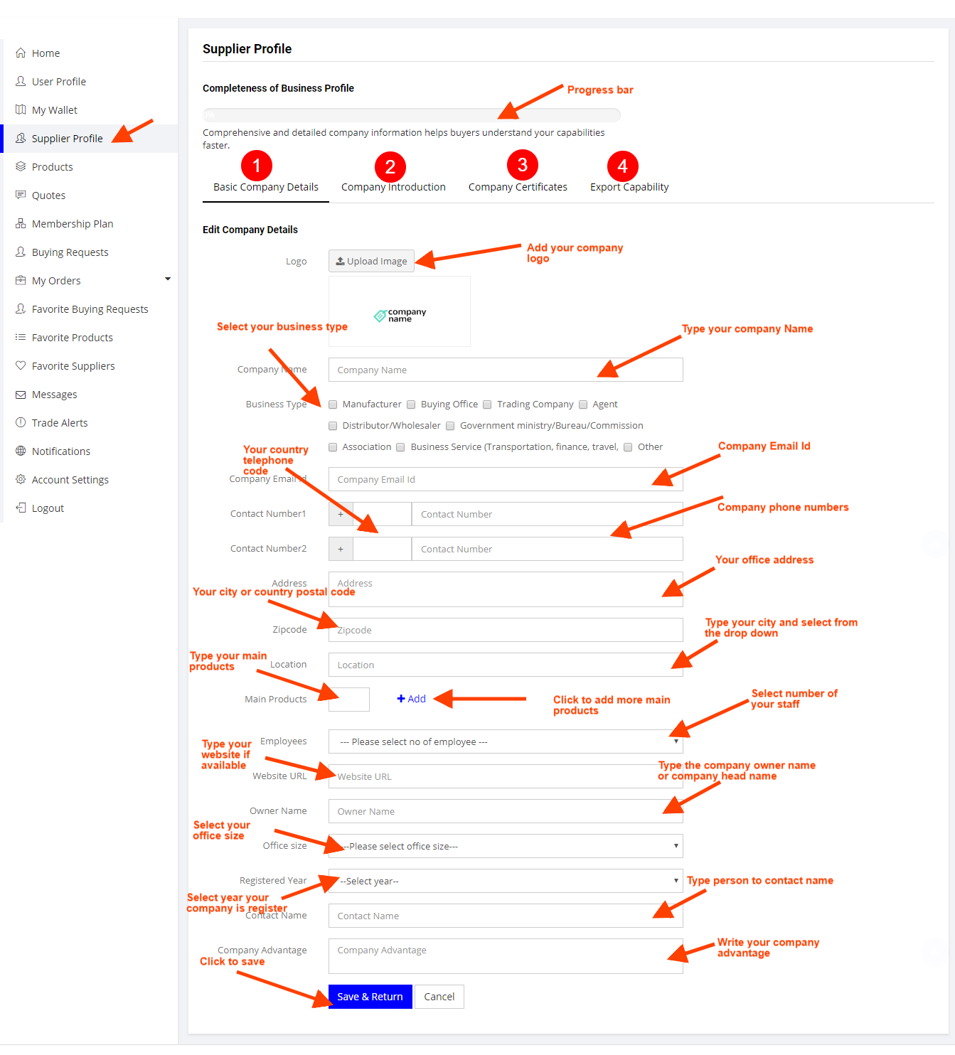To sell your products on BaloTrade you need to complete at least your user profile and supplier (company) basic profile.